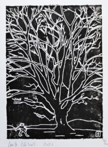 Gravure sur bois, encre couleur huile, papier blanc 100g, 14×11 cm.